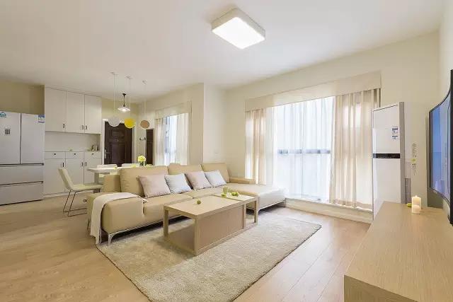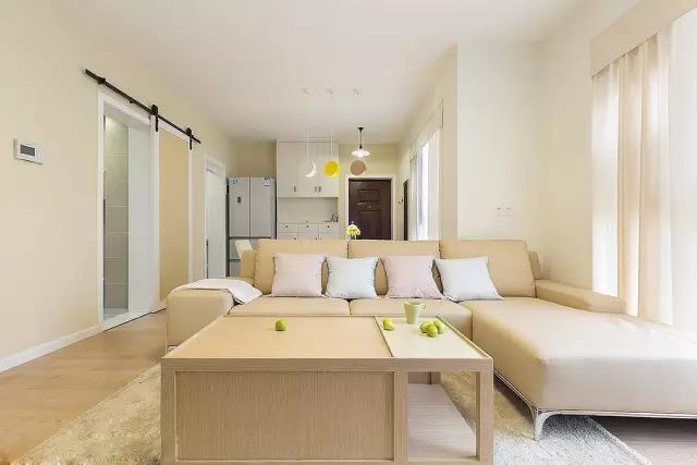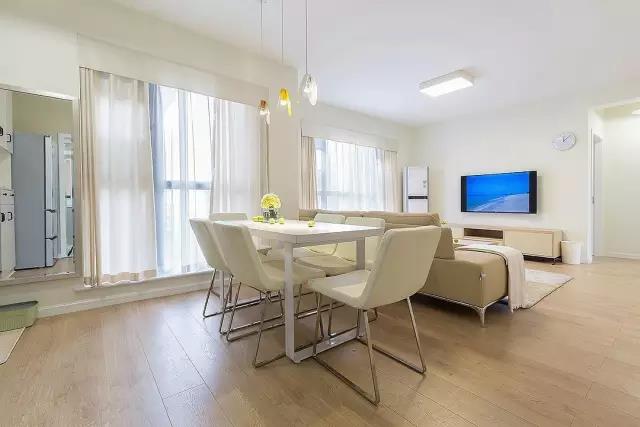 這套案例總面積約90平,小三房設(shè)計(jì),空間中只有白色、米色和原木色,唯一的點(diǎn)綴就是餐廳的亮黃色吊燈,整體讓人感覺溫馨舒適,純潔如詩!