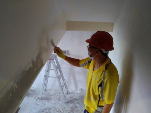??樓上墻面的情況略好,樓下情況就嚴重的多,單找平打磨這件工作,海子就做了有將近一周的時間。